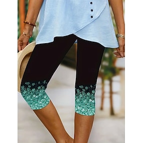 Леггинсы женские Капри Высокая эластичность Мода Уличная одежда Длиной до икры Высокая талия Цветочный графический принт Вентилируемые Мягкие На открытом воздухе Ежедневные Зеленый Лето Весна