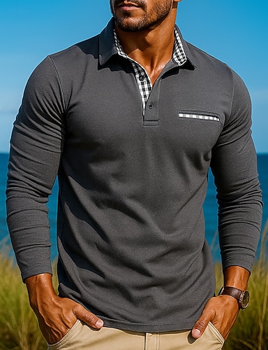 Муж. Футболка-поло Длинный рукав Отложной Верхняя часть На открытом воздухе Дышащий Полиэстер Черный Военно-зеленный Красный Теннис Гольф Бег
