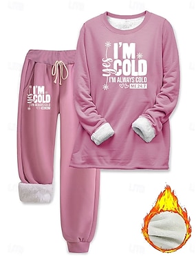Женский комплект пижам с флисовой подкладкой элегантный теплый модный комплект из двух частей спортивные костюмы брюки наборы с длинным рукавом графический текст принт для отдыха на свежем воздухе