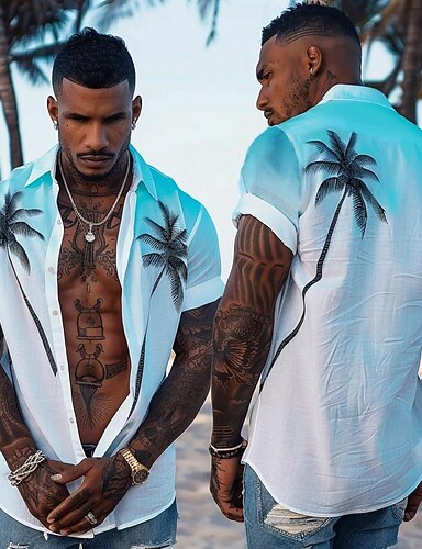 Муж. Кокосовая пальма Тропические растения Гавайская рубашка Кнопка рубашка Рубашка Алоха С короткими рукавами Гавайский Прибегнуть Отпуск Праздники Одежда для пляжа Лето Весна Отложной 3D