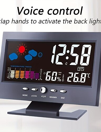 Часы с погодой и датой, неделей, температурой, влажностью, функцией прогноза погоды, функцией голосовой подсветки, 15,6x4x9,6 см/6,1*3,7*1,5 дюйма