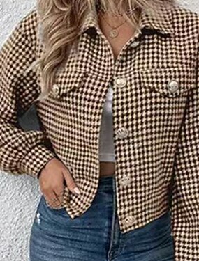 Жен. Блейзер Удобный Пуговицы Элегантный стиль Мода На открытом воздухе Решетка На выход На каждый день выходные Однобортный крой Обычная Лацкан Стандартный Длинный рукав Верхняя одежда