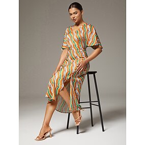 Жен. Мужской Повседневное платье Платье средней длины Цвет радуги С короткими рукавами Лето Весна Демисезонный V-образный вырез Отпуск XS S M