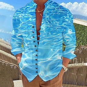 Муж. Волны Морской пейзаж Рубашка Гавайская рубашка Рубашка Алоха Длинный рукав Рубашка Воротник-стойка Мода Оригинальный рисунок На каждый день на открытом воздухе Отпуск Для улицы