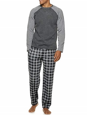 Муж. Домашняя одежда Пижамы пижама Пижамный топ и брюки 2 предмета В клетку Стиль На каждый день Удобная обувь Дом Повседневные Смесь хлопка Комфорт Вырез под горло Длинный рукав Футболка Брюки