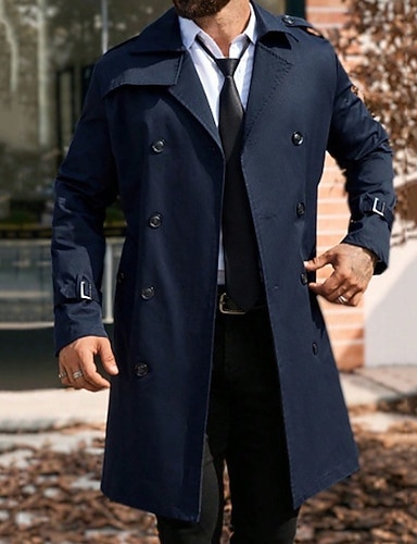 Муж. Пальто Тренч Длинный тренч Отпуск Повседневные Осень Зима Полиэстер С защитой от ветра Верхняя одежда Одежда Мода Классика Полотняное плетение Карман Лацкан Двубортный крой