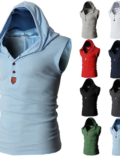 Муж. Безрукавка Майки Без рукавов Капюшон Лето Полотняное плетение Мода Оригинальный рисунок Мышцы Пуговицы на открытом воздухе На выход Для спортивного зала Черный Белый Красный Футболка для мужчин