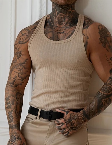 Муж. Безрукавка Майки Мускулистая рубашка Трикотажная футболка в рубчик Без рукавов Вырез под горло Лето Контрастных цветов Пит Стрип Мода Оригинальный рисунок Мышцы
