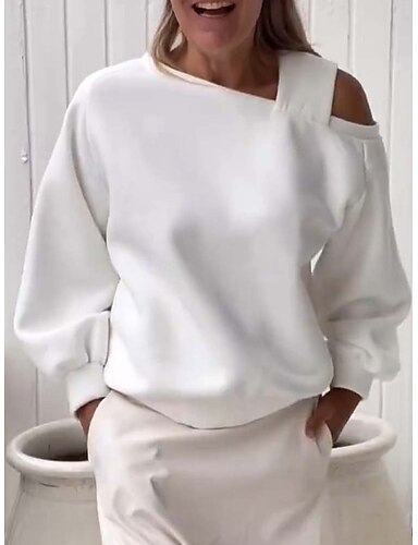 Жен. Текстурная толстовка Pullover Полотняное плетение Уличный стиль На каждый день Удобный Длинный рукав V-образный вырез Обычные топы Для улицы Праздники На выход