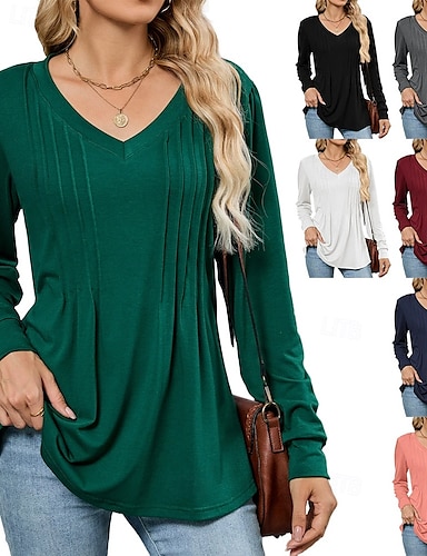 Жен. Блуза Сплошной цвет Элегантный стиль Стиль Классический Длинный рукав V-образный вырез Обычные топы Повседневные Черный Военно-зеленный Синий Лиловый Весна Осень Зима
