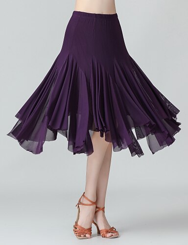 Бальные танцы Юбки Оборки Планка Жен. Выступление Учебный Завышенная талия Полиэстер