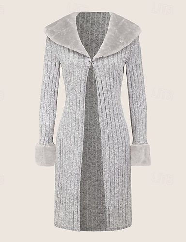 Жен. Зимняя куртка Пальто Сохраняет тепло Удобный галстук спереди Мода Современное На каждый день Полотняное плетение На выход выходные Кардиган Обычная V-образный вырез Стандартный Длинный рукав