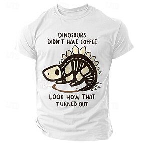 Смешная футболка для мужчин любителей кофе | Графика скелет динозавра который не пил кофе с коротким рукавом