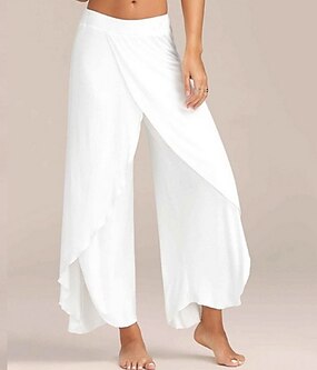 Жен. Широкие Брюки Мешковатые брюки Богемный Полная длина Нормальная Сплошной цвет Полотняное плетение Однотонный мешковатый Мягкий Повседневные На выход Армейский Зеленый Черный Белый