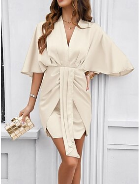 Жен. Мини-платье Черное платье Коктейльные платья Вечернее платье Простое платье Винтаж На каждый день Для улицы Свидание Свободное облегание Полотняное плетение Рукав до локтя V-образный вырез