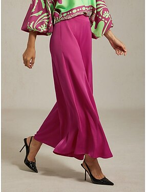 Жен. Костюм Широкие Брюки Элегантный стиль Мода Для офиса Полная длина Завышенная Сплошной цвет Карман Высокий вырез Дышащий Мягкий Удобный Слабоэластичная Офис Для улицы Бизнес