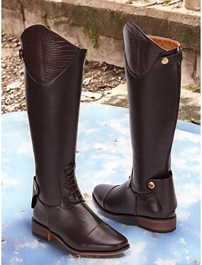 Жен. Ботинки Ретро Верховые ботинки на открытом воздухе Офис Повседневные Мрамор Сапоги до колен Заклепки Пряжки Молнии На толстом каблуке Круглый носок Винтаж Полиуретан Молния