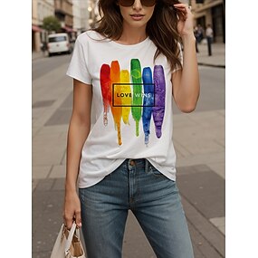 Парад гордости ЛГБТ Прайд Радужная Женская Футболка Хлопковая Футболка Графика Радуга Буква Винтажная Стильная Классическая Короткий Рукав Круглый Воротник Обычные Топы Повседневная Печать