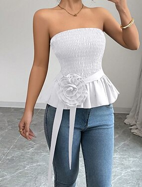 Жен. Блуза Полотняное плетение Современное На каждый день Без рукавов Без бретелей Обычные топы Праздники На выход Открытая спина Черный Белый Розовый Синий Лето