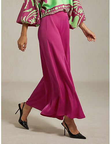 Жен. Мужской Свободный силуэт Широкие Полная длина Сатин Завышенная Элегантный стиль Богемия Отпуск Повседневные Пляжный отдых Розовый Лето XS S M