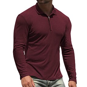 Муж. Поло с молнией на четверть Рубашка для гольфа Повседневные Праздники Четверть молния Длинный рукав Мода Современное Полотняное плетение Весна & осень Стандартный