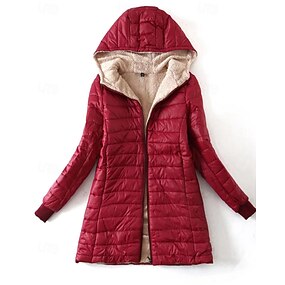 Жен. Зимнее пальто Куртка с капюшоном Сохраняет тепло Удобный Молния Карман На каждый день Полотняное плетение Отпуск На каждый день На выход выходные Длинная Капюшон Стандартный Длинный рукав
