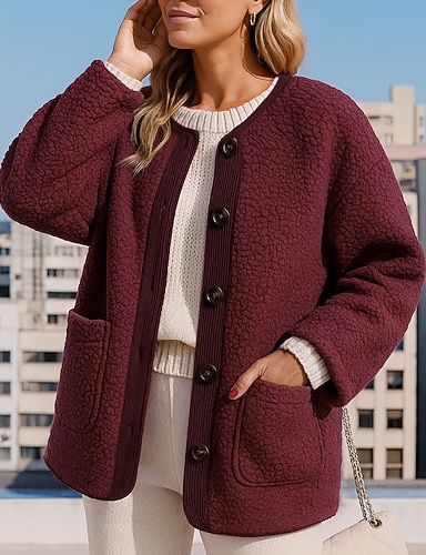 Жен. Зимнее пальто Куртка из флиса Пуговицы С карманами Длинный рукав Верхняя часть Одежда для спорта и отдыха Осень Однотонный Теплый Пешеходный туризм На открытом воздухе Путешествия