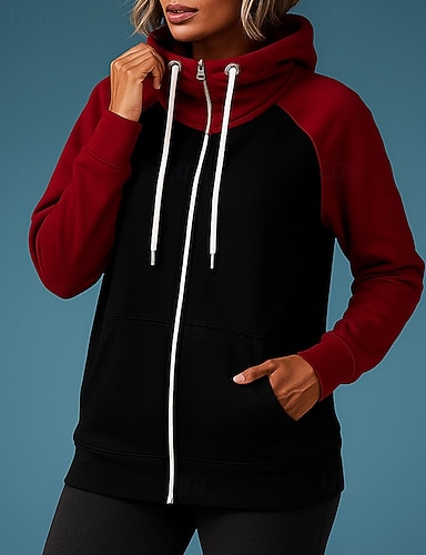 Новогодняя тематика Жен. Спортивный костюм на молнии Флисовая куртка с капюшоном Повседневная толстовка С карманами Длинный рукав Верхняя часть Одежда для спорта и отдыха Пэчворк