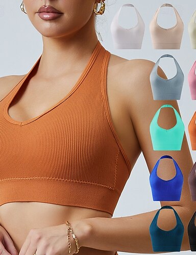 Жен. Бюстгальтер для йоги Спортивные бюстгальтеры Бюстгальтер для пилатеса Верх Пуш-ап Бесшовные Антивибрационный Беспроводной Сплошной/однотонный цвет Спорт Спортивная одежда