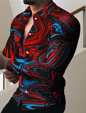Муж. Градиент Геометрический рисунок Рубашка Кнопка рубашка Длинный рукав Мода Оригинальный рисунок На каждый день на открытом воздухе Праздники Лето Весна Отложной С принтом Кнопка вниз