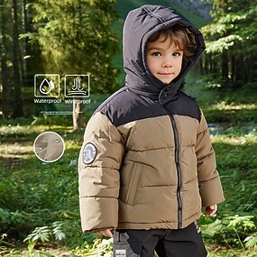 Дети Универсальные Пуховик Куртка с капюшоном Верхняя одежда Контрастных цветов Длинный рукав Молния Карман Легкость Комфорт ЗАЩИТА ОТ ВЛАГИ Пальто на открытом воздухе Повседневные Классический