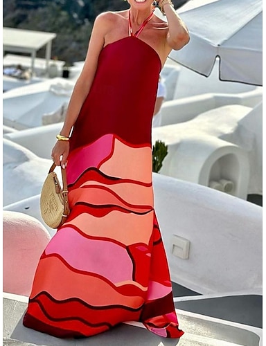 Жен. длинное платье платье макси Повседневное платье Платье в стиле 50-х годов Классика Современное Отпуск Повседневные Свободное облегание Графика Рукав до локтя Глубокий V-образный вырез