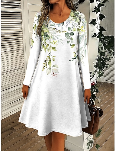 Женское мини-платье с округлым вырезом длинным рукавом повседневное платье футболка-платье платье-туника А-силуэт повседневное свободного кроя цветочный рисунок розовое синее фиолетовое зеленое осень