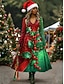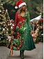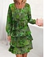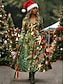 Новогодняя тематика Жен. Платье средней длины Платье A-силуэта Отпуск На каждый день Повседневные Стандартный Цветочный принт Графика Длинный рукав V-образный вырез Темно-зеленый Красный Зеленый