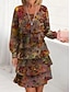 Жен. Платье средней длины Этническое платье Летнее платье Платье с принтом Винтаж Этнический Туземные на открытом воздухе Повседневные Свидание Стандартный Цветочный принт Этно Рукав до локтя