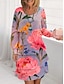 Женское макси-платье кафтан 3/4 длина рукава круглый вырез повседневное платье-шифт А-силуэт платье бохо для повседневной и праздничной носки графический цветочный розовый красный синий фуксия весна