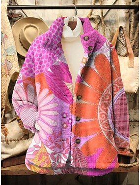 Жен. Флисовая жилетка Повседневная куртка Удобный Дышащий Карман С принтом На каждый день Цветочный принт Отпуск Для улицы Повседневные На каждый день Молния Обычная Отложной Стандартный Длинный рукав