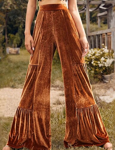 Жен. Широкие Вельветовые брюки Брюки Мода Уличный стиль Полная длина Завышенная Полотняное плетение Оборки Пэчворк Эластичная талия Воздухопроницаемость Удобный Для улицы На каждый день На выход