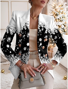 Рождественский женский блейзер, удобный, дышащий, с пуговицами, с принтом, модный, повседневный, с геометрическим рисунком, для улицы, повседневный, двубортный, с короткими лацканами, с заостренным