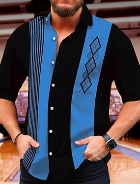 Муж. Геометрический принт Геометрический рисунок Рубашка Летняя рубашка Рубашка для боулинга С короткими рукавами Мода 1950-е года На каждый день Отпуск Повседневные На выход Лето Отложной С принтом