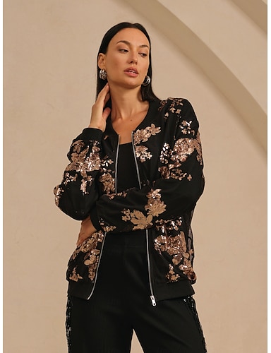 женская куртка-бомбер с круглым вырезом и пайетками для вечеринок, отпуска, осени и зимы