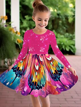 Девушки ' 3D Графика Бабочка Платье Длинный рукав 3D печать Лето Осень Отпуск Для занятий спортом Повседневные Симпатичные Стиль На каждый день Красивый Дети 3-12 лет