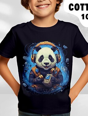 Мальчики 3D Графика Животное Панда Футболка С короткими рукавами 3D печать Лето Весна Активный Спорт Мода 100% хлопок Дети 3-12 лет на открытом воздухе Повседневные Стандартный