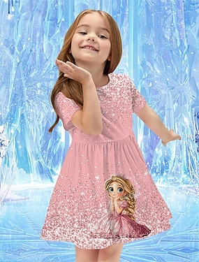 Девушки ' 3D Графика Мультипликация Платье С короткими рукавами Лето Весна Отпуск Повседневные Праздники Принцесса Красивый Милая Дети 4-12 лет Повседневное платье Платье A-силуэта До колена