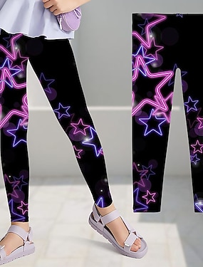 Девочки 3D Графика Звезда Леггинсы Лето Весна Активный Симпатичные Стиль Уличный стиль Дети 3-12 лет на открытом воздухе Для улицы спорт Тонкие