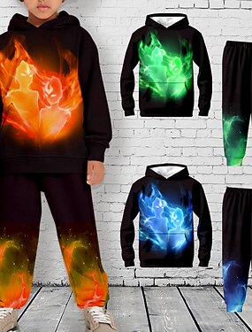 Мальчики 3D Графика Комплект с капюшоном и спортивными штанами Набор Длинный рукав 3D печать Осень Зима Активный Мода Круто Дети 3-12 лет на открытом воздухе Отпуск Для улицы Стандартный
