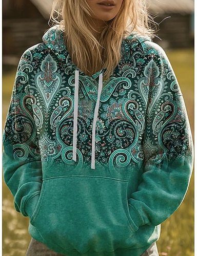 Женская толстовка с 3D-принтом в винтажном стиле Boho патчворк цветочная пуловер толстовка графика paisley племенная повседневная с длинным рукавом с капюшоном вечерняя одежда уличная одежда весна