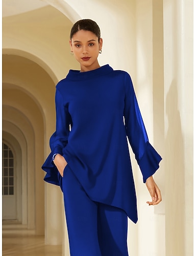 Жен. Нарядные Топы Сплошной цвет Элегантный стиль Винтаж Повседневные Рукав 3/4 Вырез под горло Обычные топы Свадебный гость Для вечеринок Наряды для свиданий Блеск Темно синий