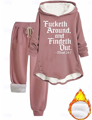 Жен. Теплый Повседневные Комплекты из двух предметов Спортивный костюм Комплекты брюк Длинный рукав Капюшон Графика Полотняное плетение Буквы Кулиска С принтом Повседневные