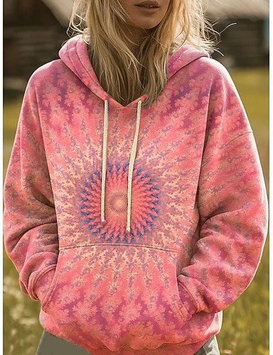 Жен. Толстовка с капюшоном и пуловером Графика Радужный На каждый день Богемный Длинный рукав Капюшон Обычные топы Для улицы На каждый день С принтом Передний карман Розовый Оранжевый Зеленый